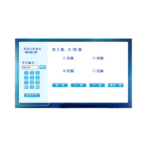 在與教師機聯網后,可進行脈象考試:教師機上可進行考卷和試題的編輯、下發(fā),在學生機上進行答題;最終在教師機自動統計分數;