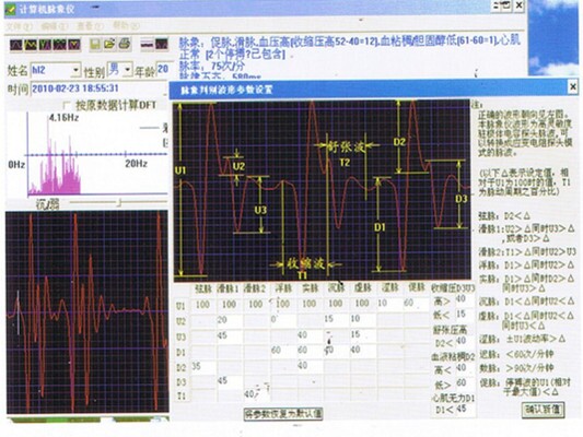 2、中醫(yī)智能脈象儀/脈象采集儀有系列脈圖檢測、40秒脈圖檢測功能,能實(shí)時顯示、存儲、重讀數(shù)字化脈波信號,自動判讀脈象的位、數(shù)、形、勢,識別脈圖特征參數(shù),并以多邏輯判斷模式確定脈名;能以脈診測為線索,經(jīng)人機(jī)對話詢問病人的癥狀,作出初步的中醫(yī)八鋼和臟腑辯證結(jié)論;能顯示和打印系列脈圖、最佳脈圖及其特征參數(shù)、取脈壓力-脈幅趨勢圖、40秒脈波趨勢圖等組成的脈圖檢測報告;以及根據(jù)脈象提示的動脈系統(tǒng)張力、阻力、生理年齡、自律神經(jīng)平衡狀態(tài)和辯證結(jié)論等組成的臨床輔助診斷報告。