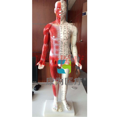 這兩模型非常詳細(xì)地標(biāo)明了14條主要經(jīng)絡(luò)線,身體右側(cè)是361個(gè)經(jīng)穴和48個(gè)經(jīng)外穴以及骨度線,即用“寸”來(lái)方便地測(cè)量針灸點(diǎn)之間的距離。身體左側(cè)是皮下組織,顯示神經(jīng)系統(tǒng)分布、動(dòng)靜脈、血管和肌肉構(gòu)造,還標(biāo)明了在主要經(jīng)絡(luò)線上沒有標(biāo)明的手足部的經(jīng)外穴。適用于中醫(yī)教學(xué)、針灸和推拿等。用PVC制成。