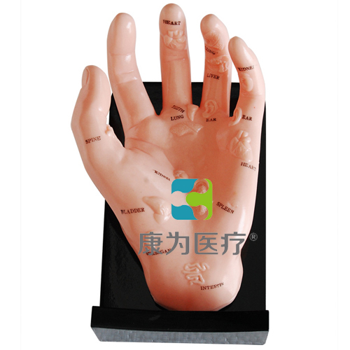 這是新近開發(fā)的保健手模型,用PVC制成,顯示相對應(yīng)的人體內(nèi)臟器官在手上的針灸位置。安放于木底座上?! ?/span>