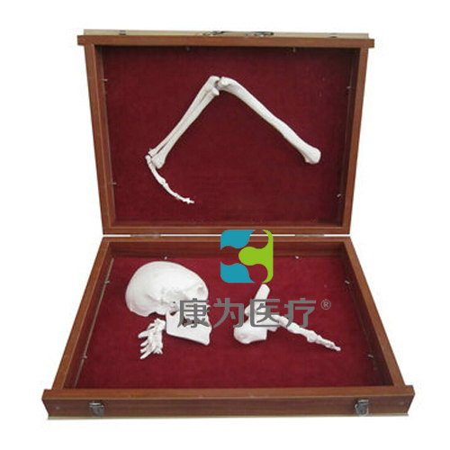 由頭顱骨(含下頜骨)的矢狀切,第1-5頸椎的矢狀切,脛骨和腓骨下段、距骨、肱骨、前臂骨、手骨(示手舟骨、頭狀骨、第三掌骨和中指骨)等組成。