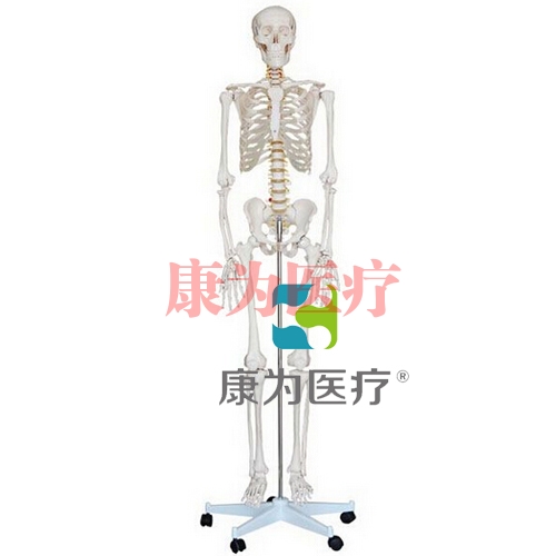 男性全身人體骨骼模型示男性成人骨骼,串制成正常直立姿勢,四肢大的關節(jié)部分均可活動。