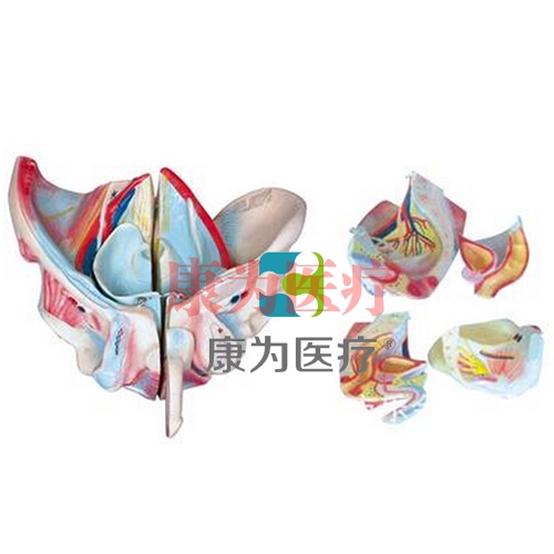 ■ 該模型由男性骨盆失狀切面和盆腔器官失狀切面等部件組成,并顯示男性骨盆、生殖器官和盆腔臟器以及血管神經等結構。