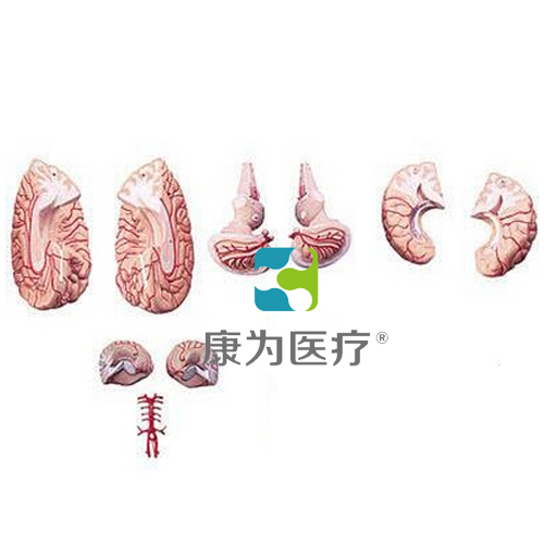 這種極其真實(shí)的自然的大小腦模型可分為9部分,顯示顳葉及枕葉,額葉和頂葉,小腦,腦干和基底動(dòng)脈的部分。所有機(jī)構(gòu),包括血管