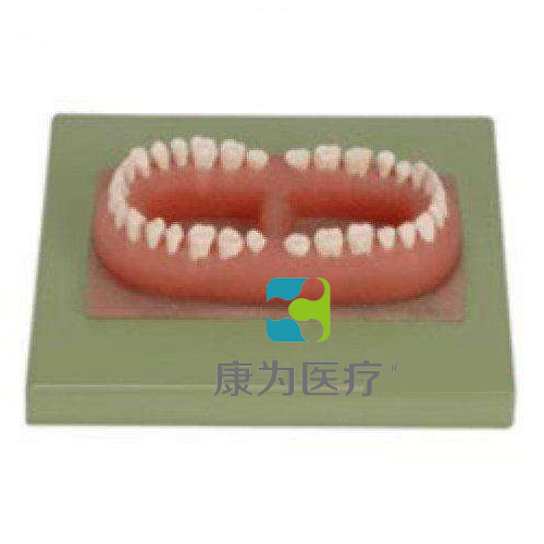 成人牙模型總匯模型上下頜牙齒模型平放在基板上,顯示成人牙列,切牙,尖牙,前磨牙和磨牙的形態(tài)及構(gòu)造,共計(jì)32顆牙齒。