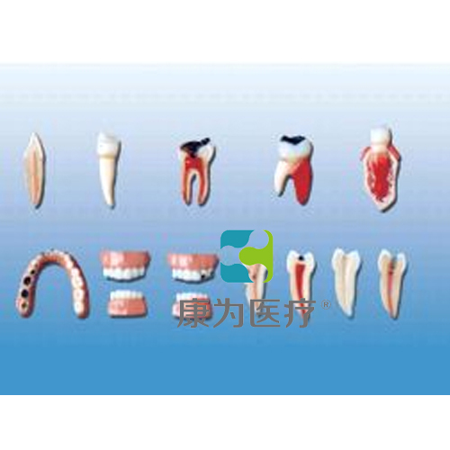 牙齒病變系列模型由健康牙齒與牙髓炎、牙周炎、齲齒等病牙以及作好充填準備的牙齒、已用銀汞合金充填的牙齒等12個部件組成,并顯示健康牙齒與牙髓炎、牙周炎、齲齒等病理形態(tài)以及臨床治療方法。