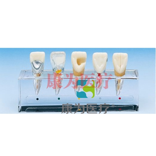 該模型由健康牙、齲齒、作好充填準(zhǔn)備的牙齒、已充填的牙齒以及用合金充填修補(bǔ)的牙齒等5個(gè)部件組成,并顯示齲齒與牙髓炎等病理過程以及臨床治療方法、共有5個(gè)部位指示標(biāo)志。