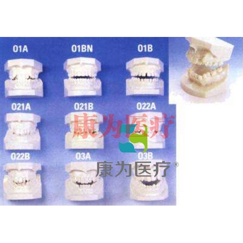 產(chǎn)品介紹:用環(huán)氧樹(shù)脂制成的正畸分類(lèi)模型,按安氏分類(lèi)對(duì)錯(cuò)合畸形進(jìn)行分類(lèi),一套共有10組模型。