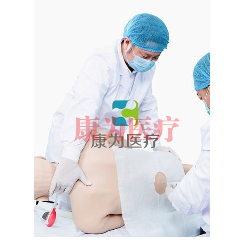 ㈢全身內部骨骼各部位關節(jié)為金屬構件連接,仿真標準化病人取側臥位,背部與床面垂直,頭向前胸彎曲,雙膝向腹部屈曲,軀干呈弓狀。腰部可以活動,操作者需一手挽仿真病人頭部,另一手挽雙下肢腘窩處抱緊,使脊柱盡量后凸增寬椎間隙,才能完成穿刺。