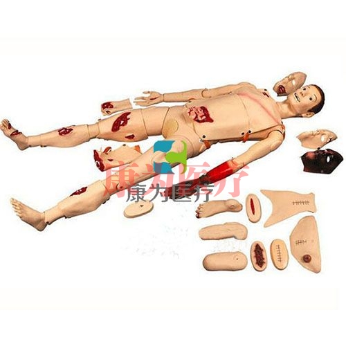 “康為醫(yī)療”全功能創(chuàng)傷護(hù)理人,創(chuàng)傷護(hù)理模擬人,,燒傷假人 全功能創(chuàng)傷模擬人采用進(jìn)口硅橡膠材料注模制成,該模型可將各部位創(chuàng)傷附件附著在護(hù)理人模型上,模擬身體各種創(chuàng)傷,具有真實(shí)的操作手感,可模擬創(chuàng)傷部位的清洗、消毒、止血、包扎、固定和搬運(yùn)等操作,為您提供真實(shí)的實(shí)踐訓(xùn)練機(jī)會(huì),用于外科創(chuàng)傷急救救護(hù)技能訓(xùn)練。 全功能創(chuàng)傷護(hù)理人模型由進(jìn)口塑膠材料、經(jīng)不銹鋼模具澆注工藝而成,具有形象逼真、操作真實(shí)、拆裝方便、結(jié)構(gòu)標(biāo)準(zhǔn)、經(jīng)久耐用等特點(diǎn),是目前國(guó)內(nèi)較先進(jìn)、功能齊全、材料考究的全新產(chǎn)品。 ■ 面部燒傷ⅠⅡⅢ度; ■ 背部燒傷ⅠⅡⅢ度; ■ 8塊撕裂傷和開放式骨折傷粘貼模塊