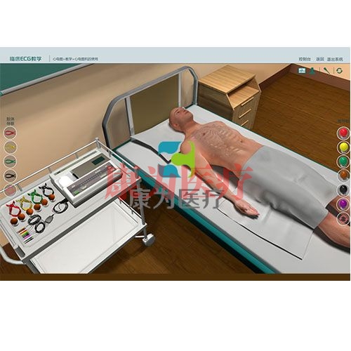 5. 軟件配有虛擬的基礎(chǔ)心電圖機(jī)和虛擬病人,在逼真的3D環(huán)境下對(duì)基礎(chǔ)心電圖機(jī)使用集中訓(xùn)練,大大提高了教學(xué)效率。