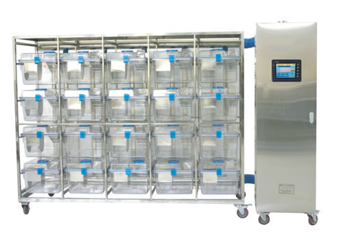 07.采用靜壓微風(fēng)技術(shù),對(duì)每個(gè)籠盒獨(dú)立送氣,防止交叉感染;籠架上設(shè)置有進(jìn)出風(fēng)關(guān)閉閥,主機(jī)可自動(dòng)調(diào)節(jié)每盒的風(fēng)速,使整架每個(gè)籠盒的壓差均勻;