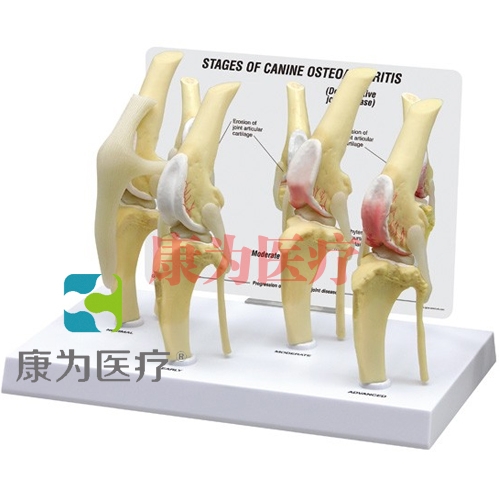犬四段膝蓋模型為一組四個(gè)真人大小犬膝模型說明退行性關(guān)節(jié)疾?。ü顷P(guān)節(jié)炎)。 無疾?。ㄕ#┫ドw還包括額外的重要結(jié)構(gòu),包括韌帶,腱和髕骨。 其他三個(gè)模型演示關(guān)節(jié)表面變性和骨贅(骨刺)的發(fā)展。
