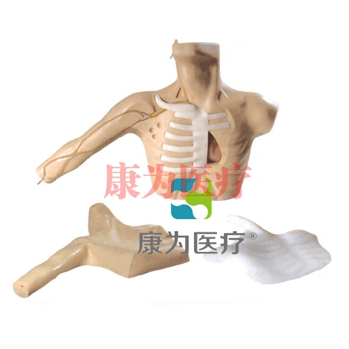 1、外周穿刺中心靜脈穿刺插管模型為成人上半身軀干,右側(cè)上臂至腕部,體表標(biāo)志明顯,包括鎖骨、胸骨上切跡和肋骨以及胸鎖乳突肌。