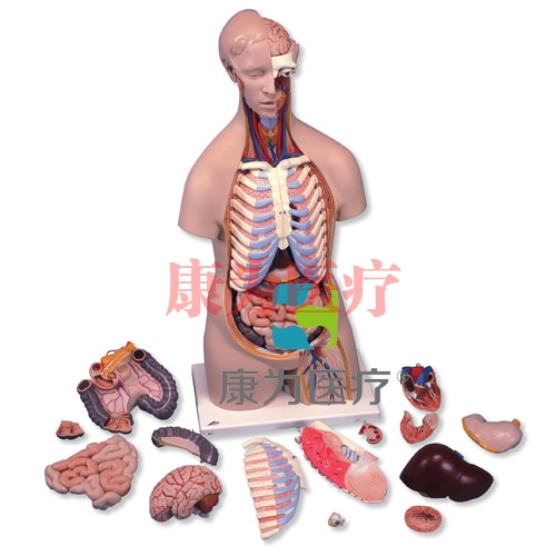 手工著色,詳細逼真 。高質量合成材料制成 ,在德國開發(fā)和制模 這款模型在教學中最常用,它詳細展現(xiàn)了人體解剖細節(jié),包括下列可拆卸部分:3部分頭 、2肺葉帶胸骨和肋骨、2部分心臟、胃、肝臟帶膽囊、4部分腸、前半腎、前半膀胱,同時供應3B軀干模型指南。
