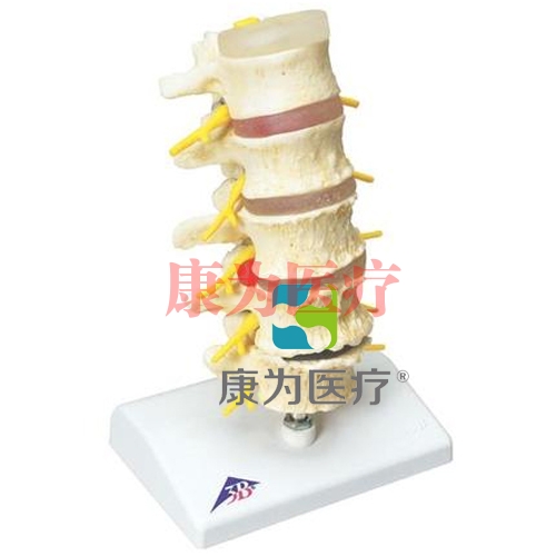 該模型對(duì)腰椎椎間盤(pán)健康與退化變性的對(duì)比結(jié)構(gòu)特征做了圖解!退行性病變的椎間盤(pán)用膨出與脫垂的兩種形式顯示,并能見(jiàn)到其相對(duì)于椎骨的位置變化情況。模型可以分解為椎體、椎間盤(pán)以及脊神經(jīng)三部分。