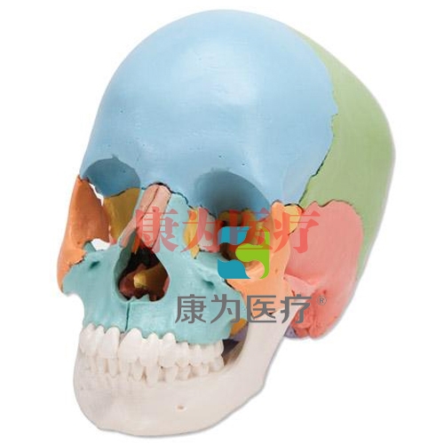 人造頭顱模型,是由22塊可拆卸部分組成,不同的部分使用不同顏色標(biāo)記,具有很好的教學(xué)目的。