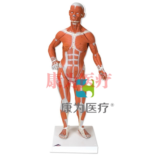 此款臺式小肌肉模型(57厘米)非常有實用價值。所有人體表面肌肉色彩逼真,結(jié)構(gòu)精確。胸板可拆卸以顯示內(nèi)器官,右半含女性乳腺??傆嫻?25個以編號組織。置于基架上。