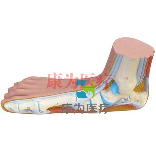 除了表層結(jié)構(gòu),還展示了足內(nèi)側(cè)的骨頭、肌肉和韌帶。