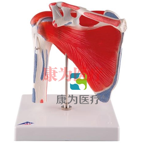模型由上半身的肱骨、鎖骨以及肩胛骨部分組成,顯示了轉(zhuǎn)子所附的肌肉成分,肌肉的起始、終止部位均用顏色標(biāo)注(起始=紅色;終止=藍(lán)色)。去除個(gè)別肌肉,即可見(jiàn)到肩關(guān)節(jié)的所有運(yùn)動(dòng)形式。模型有底座。