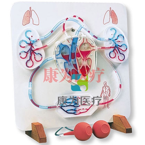 這款模型可使課堂教學(xué)栩栩如生! 機(jī)體的循環(huán)系統(tǒng)完整,可見(jiàn)“血液”在透明的動(dòng)脈、靜脈、毛細(xì)血管和心室里流動(dòng)。特意設(shè)計(jì)的深紅色的靜脈血和鮮紅色的動(dòng)脈血,以強(qiáng)化血紅蛋白在人體血管網(wǎng)流動(dòng)時(shí)有氧和缺氧的視覺(jué)效果。置于撐腳基板上,并提供教師指導(dǎo)手冊(cè)、紅色顏料和注射器。