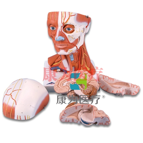 展示表層肌肉和深層肌肉、神經(jīng)和血管??刹鹦额^蓋骨及3部分腦。置于可拆卸基板上。
