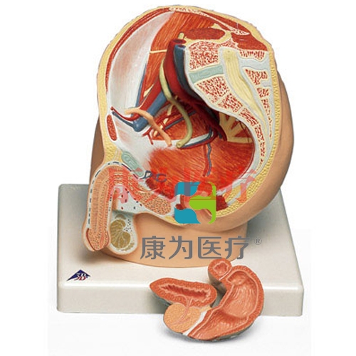 除了骨盆所有重要結(jié)構(gòu),這款中切模型非常詳細(xì)地展示了腹腔和骨盆肌,前半生殖器與膀胱和直腸可拆卸。置于基板上。
