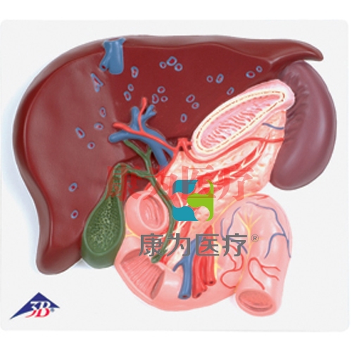 這款立體模型表現(xiàn)了肝臟及: 膽管 ,膽囊,胰,十二指腸 ,血管 ,肝外道與膽囊,主胰管和管口置于可基板上。