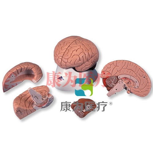 此腦膜型可中分,所有腦結構手工著色、標號并另附說明。右半腦可分解為:前腦頂葉 ,腦干帶顳枕葉 ,半小腦置于可拆卸基架上供貨。