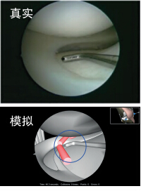 課程內(nèi)容按難易程度的順序排列,早期訓(xùn)練內(nèi)容為:在膝關(guān)節(jié)處創(chuàng)造操作空間, 其中包括標(biāo)準(zhǔn)的關(guān)節(jié)鏡探査, 使用探鉤。