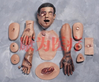 ● 創(chuàng)傷頭部可以與成人模型連接使用,具有:撕裂的耳朵,割裂的眼睛、唇、頸和頭皮,流血的鼻子,臉頰刺穿物,臉部挫傷