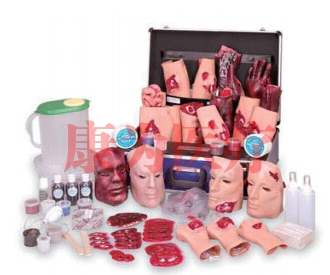 ● 該95件套重創(chuàng)模型元件可進行創(chuàng)傷處理及傷員搬運的仿真練習(xí) 。36塊撕裂傷及開放性骨折傷粘帖模塊