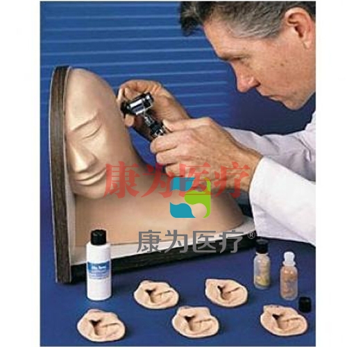 該模型包括:正常的鼓膜、黏液樣的耳炎介質(zhì)、液體狀的血清耳炎介質(zhì)、耳穿孔慢性耳炎介質(zhì)可以進(jìn)行清理耵聹練習(xí)的耳朵