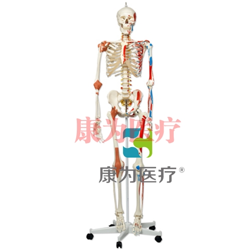 | 3 | GPIMY1003 | 肌肉附著標(biāo)示人體韌帶骨架模型 | 高分子復(fù)合材料,參照國(guó)內(nèi)外權(quán)威圖譜《格氏解剖學(xué)》,全身骨骼組成,自然大小,主要關(guān)節(jié)全部鏈接,上肢骨與下肢骨可自由拆卸,一側(cè)骨骼顯示附著肌肉的起點(diǎn) (紅色) 與止點(diǎn) (藍(lán)色),另側(cè)骨骼關(guān)節(jié)帶韌帶,整個(gè)骨架170公分高,懸掛于附有滑輪底座的支柱上。 ▲配套3D解剖三維教學(xué)仿真課件 | |||