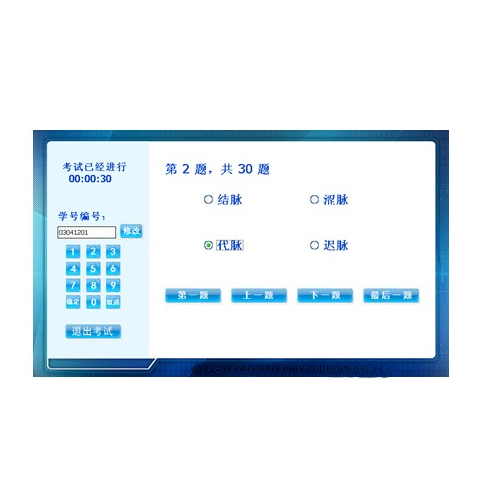 多臺(tái)脈象手可通過網(wǎng)絡(luò)與教師機(jī)相連組成考試網(wǎng)絡(luò)。通過在教師機(jī)上編輯考題,下發(fā)到脈象手上實(shí)現(xiàn)統(tǒng)一考試功能。