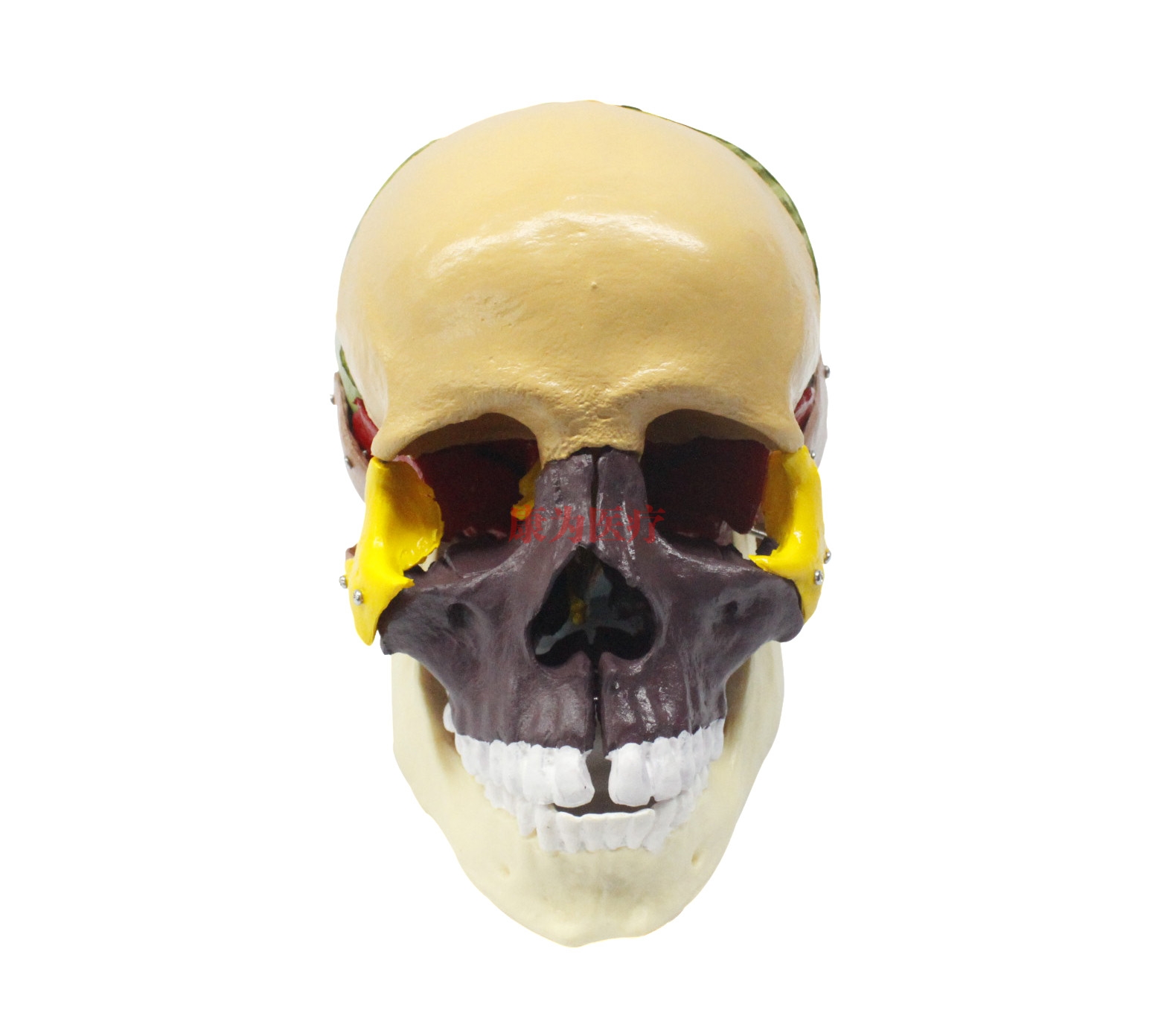 分離頭顱骨散骨模型為精裝盒子,頭顱骨散骨模型固定在盒子上,顯示腦顱骨和面顱骨的形態(tài)結(jié)構(gòu)特點