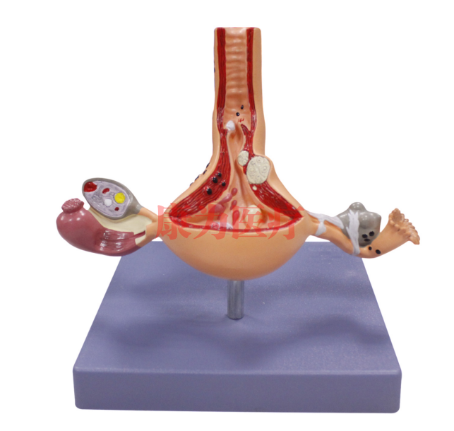 ●真人大小的模型,矢狀縱切面,劃分成2件,顯示了女性生殖系統(tǒng)中最重要的疾病