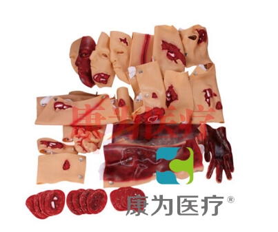 包含了骨折、肢體斷裂、撕裂傷、創(chuàng)傷、挫傷等43件不同的創(chuàng)傷組件,有不同程度的創(chuàng)面大小和深度,可練習(xí)傷口識別和評估