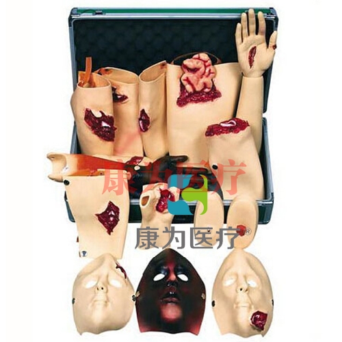 1、高級創(chuàng)傷評估模塊采用進(jìn)口硅橡膠材料注模制成,該模型由16件模塊組成,模擬身體各種創(chuàng)傷,包括燒傷Ⅰ、Ⅱ、Ⅲ度、撕裂傷、挫傷、小腸突出、開放性骨折、槍彈傷、金屬異物刺傷以及肢體斷裂傷等。