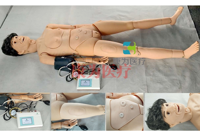 2、全套模型由全身老年模擬人和無(wú)創(chuàng)血壓測(cè)量模擬器組成,有近50項(xiàng)護(hù)理功能。