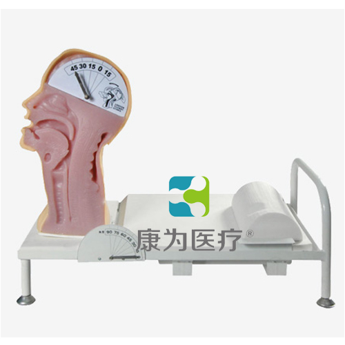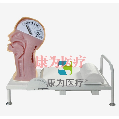 配有可調(diào)節(jié)的模擬病床,病床以及頭頸部均有角度指示針,可觀察頭頸角度的變化與病床的角度關(guān)系